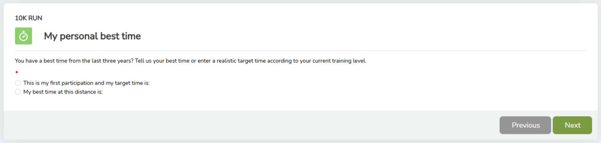 • Your personal best time