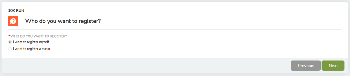• Who would you like to register? (Here you have the option to register a minor)