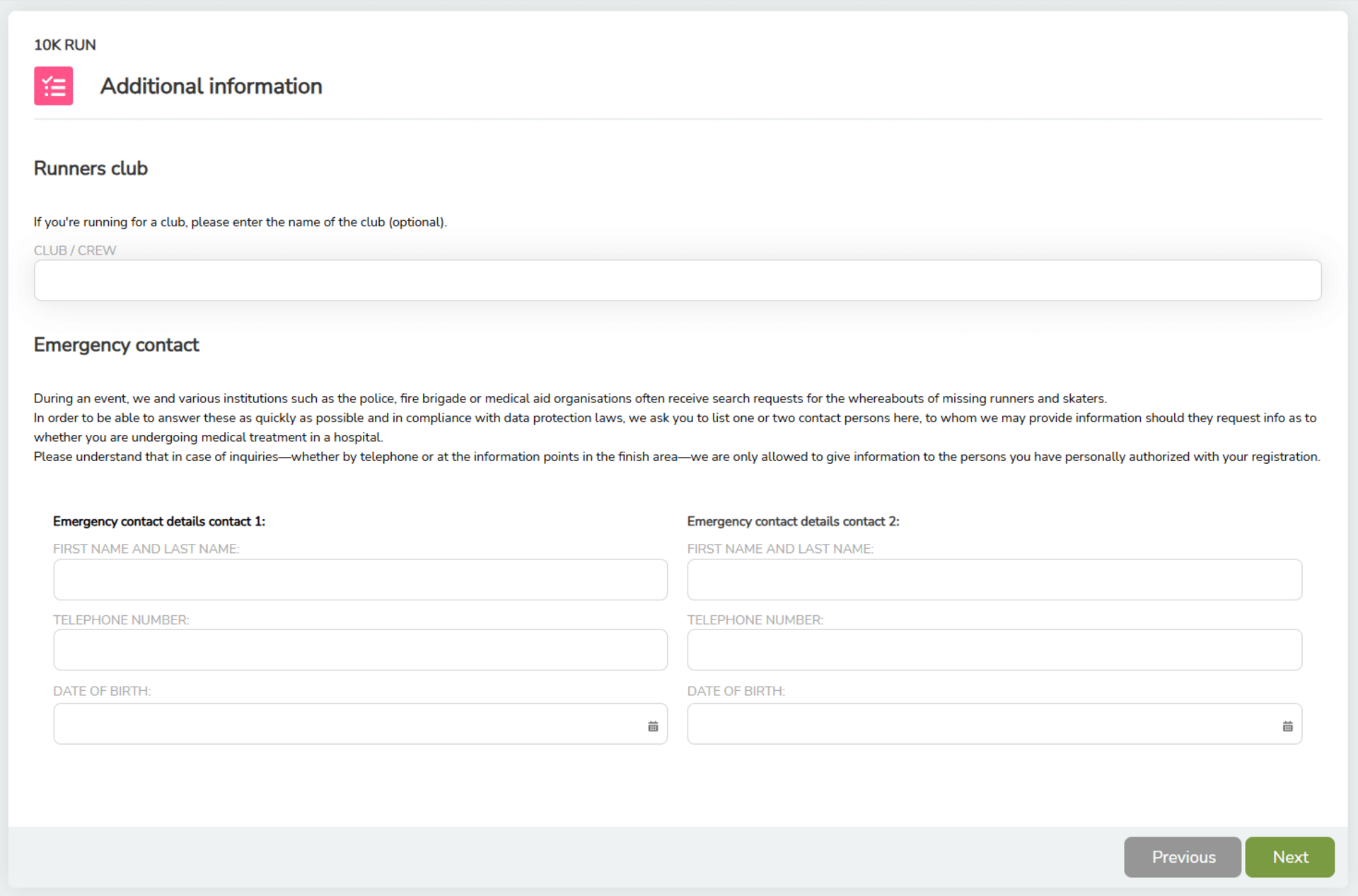Important: The exact data requested may vary slightly from event to event. Please simply follow the instructions in the registration portal.