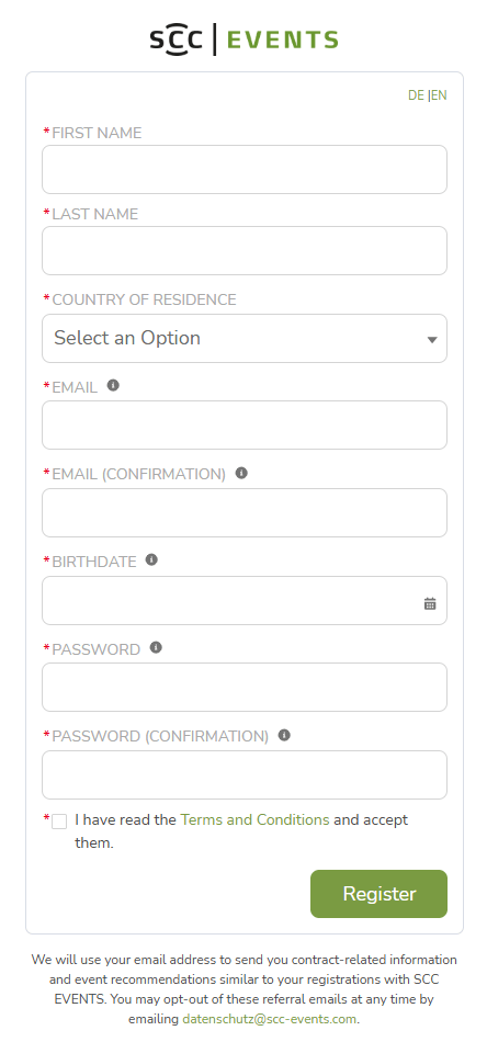 You can use your user account to register for all SCC EVENTS events, check your registrations, book additional services, and manage your personal data.