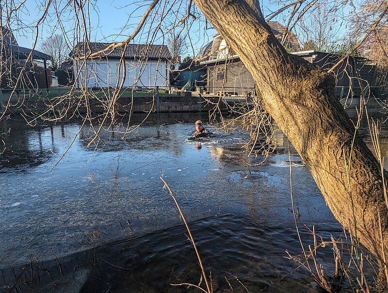 Zugefrorene Gewässer sind nur für sehr erfahrene SwimRunner geeignet, hier ist besondere Vorsicht geboten © SCC EVENTS / privat